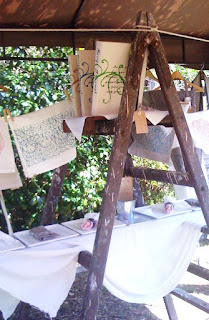 Last Sunday, My partner Stuart and I attended a preview to celebrate Marie-Nicole’s new range of beautiful hand printed linen range for everyday living. The motifs printed onto each piece are hand drawn, cut and printed using eco-friendly printed pastes. The most impressive thing I learnt on the day was any offcuts from the production of each piece are either used as packaging or composted for her home potager. Each of Marie- Nicole ‘s creation is one of a kind as no two prints ever turn out exactly the same. Her range includes Tea towels,serviettes, mats ,coasters, eco carry bags, recipe journal and many more.