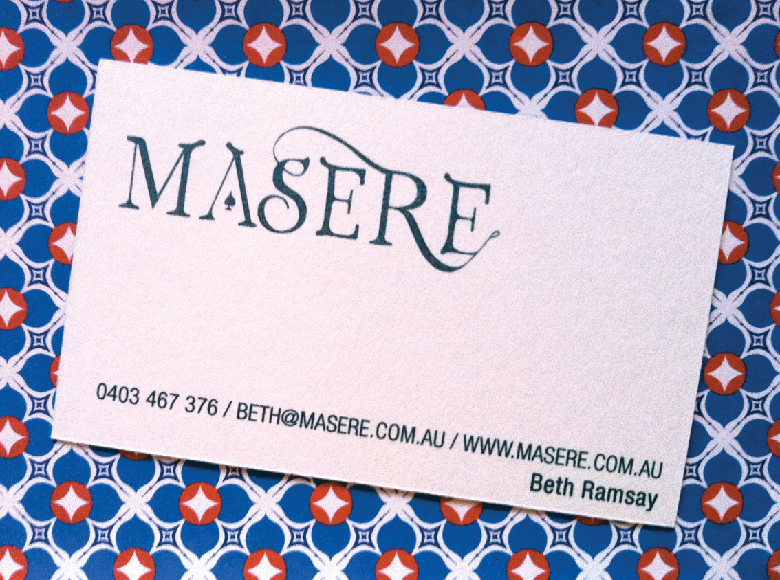 I arrived home about 1 & ½ years ago and spent my initial months freelancing around Melbourne, mainly designing for The Arts Centre and in June 2010 I started Masere, my own creative company specialising in packaging and print at this time I was fortunate to meet Vinh and Stuart at a crafts fair, ideally I would like to be designing and having a skin care product business at the same time (I can be a little over enthusiastic sometimes), however Vinh wisely advised that I not diversify too much, thus spreading myself too thin and to continue to start my design business first and then work on the skin care business after I have this up and running. I’m so pleased I took his advice as I’m finding designing for my own business so much more rewarding and business is growing! I’m still developing my skin care range – just in my spare time.