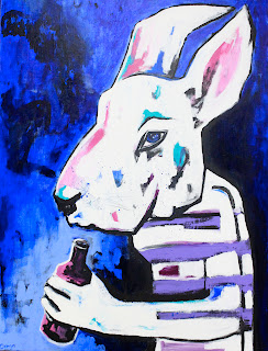 Over the past few years I feel my paintings have been taking on a new direction – Watching a child grow has definitely had an influence – currently I find my self involved in their innocent world but with the knowledge that life is not all that it seems. I guess this is what I am working on at present – using animals as characters – artwork that appears innocent – but somehow could be something else.