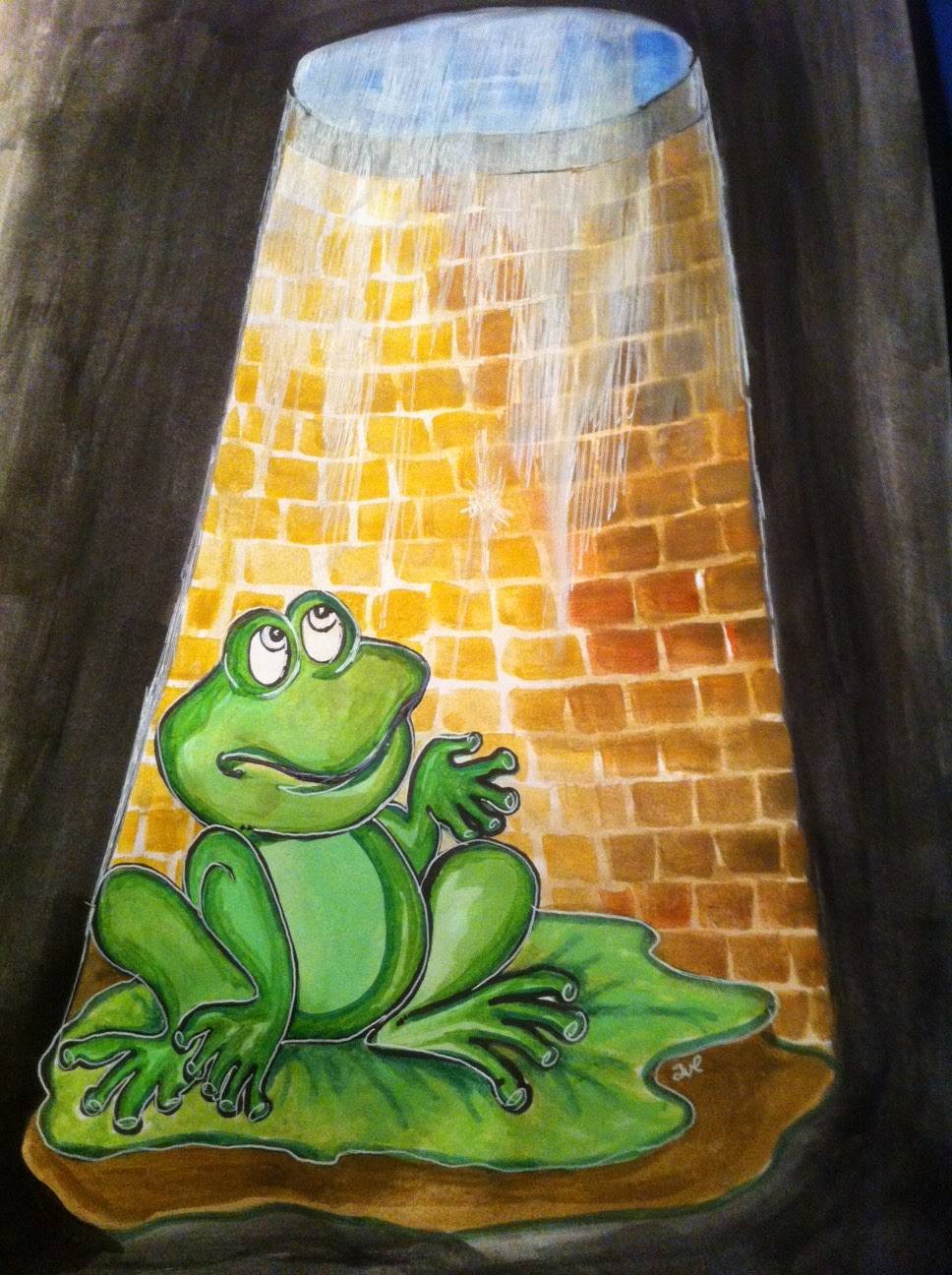 Once upon a time, there lived a frog in an abandoned well. He had only seen the sky through the top of the well. Little Frog had never spent a moment of his life outside of the well. Still he was quite satisfied with his life living inside the well.